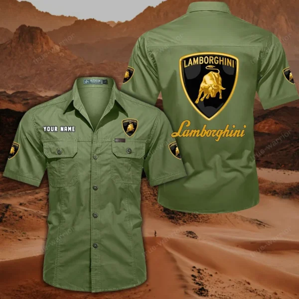 Lamborghini Hemd mit kurzen Ärmeln, All-Over-Print Kurzarmhemd CAR444052625840 - Khaki