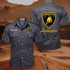 Lamborghini Hemd mit kurzen Ärmeln, All-Over-Print Kurzarmhemd CAR444052625840 - Khaki