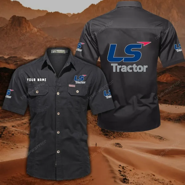 LS Tractor Hemd mit kurzen Ärmeln, All-Over-Print Kurzarmhemd CAR444052625898 – Schwarz