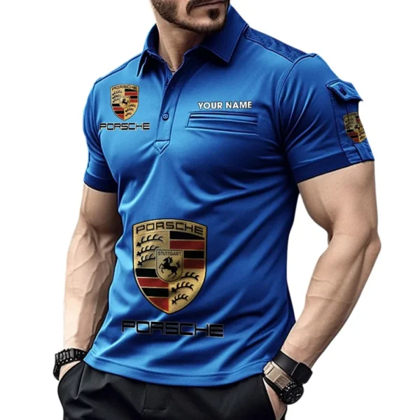 Porsche Poloshirt mit Tasche, All Over Print Pololshirt für Männer Porsche Fan CAR450051325341 – Blau