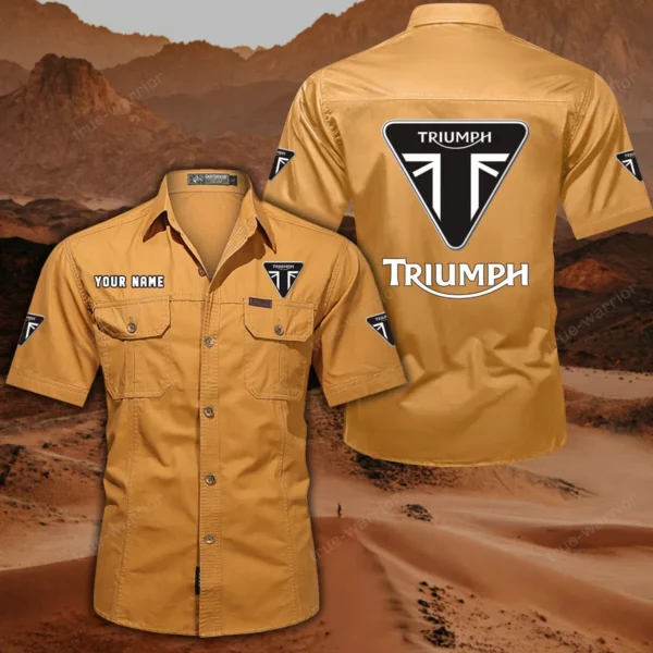 Triumph Motorcycles Hemd mit kurzen Ärmeln, All-Over-Print Kurzarmhemd CAR444052625862 - Khaki